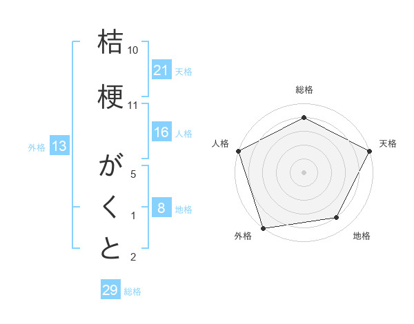 桔梗 がくとさんを姓名の画数から五運を鑑定