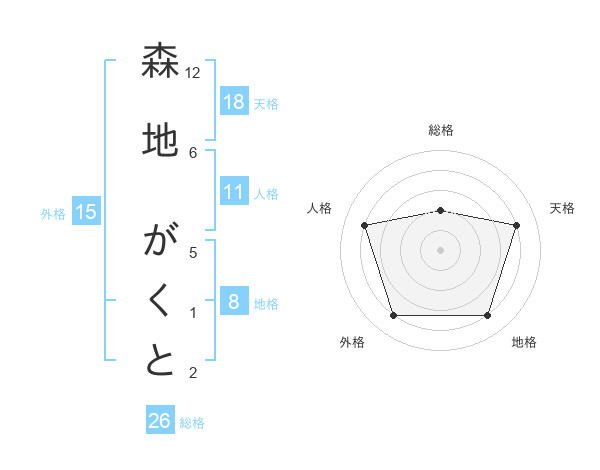 森地 がくとさんの総格は26画の2点!