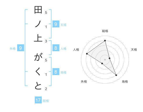 田ノ上 がくとさんの総格は17画の4点
