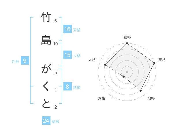 竹島 がくとさんの総格は24画の5点!