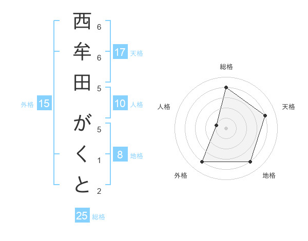 西牟田 がくとさんを姓名の画数から五運を鑑定