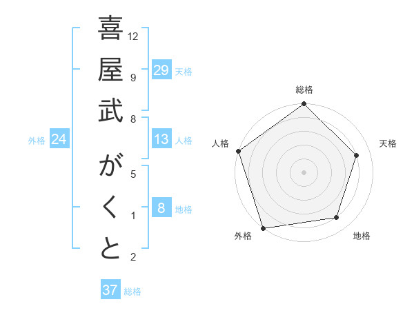 喜屋武 がくとさんを姓名の画数から五運を鑑定