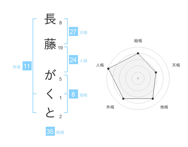 長藤 がくとさんを姓名の画数から五運を鑑定