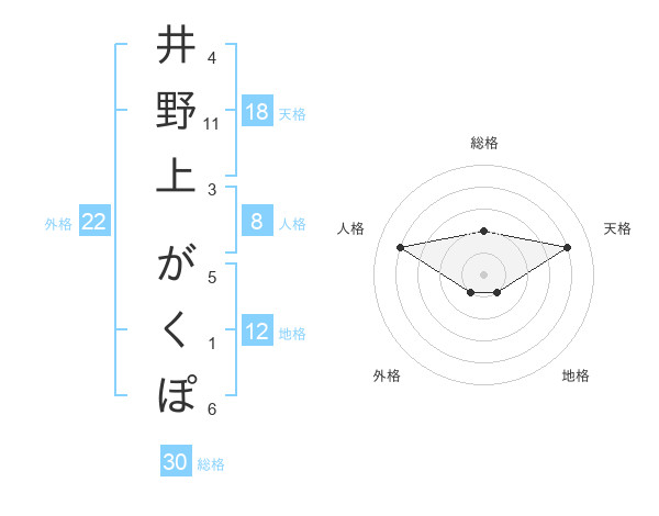 井野上 がくぽさんを姓名の画数から五運を鑑定