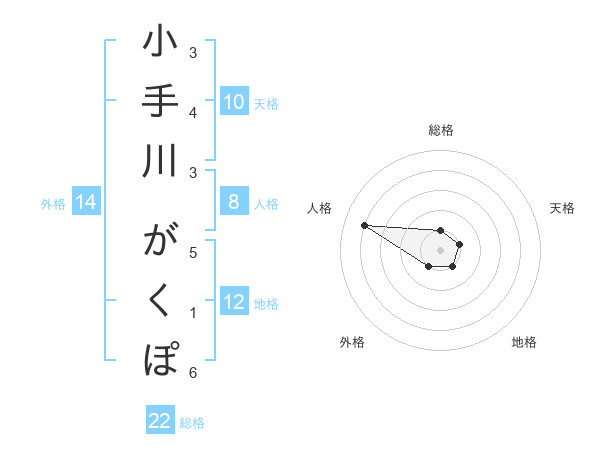 小手川 がくぽさんを姓名の画数から五運を鑑定