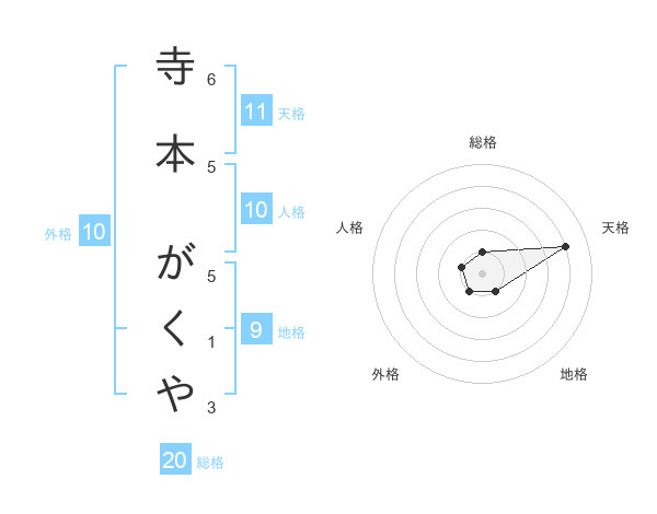 寺本 がくやさんを姓名の画数から五運を鑑定