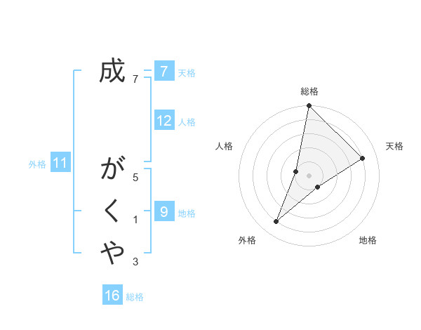 成 がくやさんの総格は16画の5点!