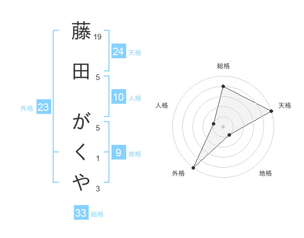 藤田 がくやさんを姓名の画数から五運を鑑定