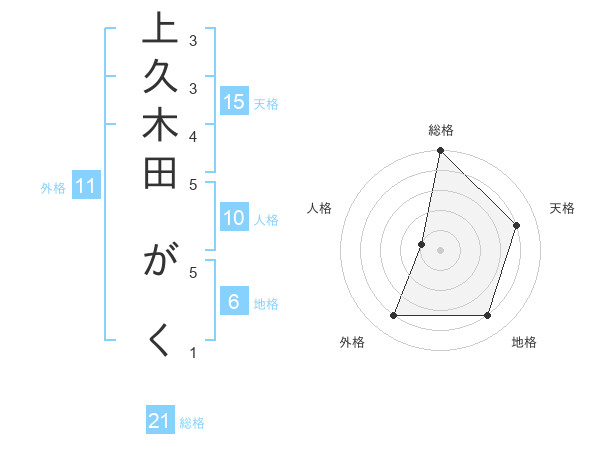 上久木田 がくさんの総格は21画の5点!