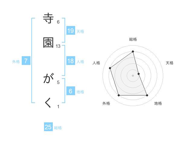 寺園 がくさんの総格は25画の4点!