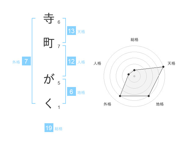 寺町 がくさんの総格は19画の1点!