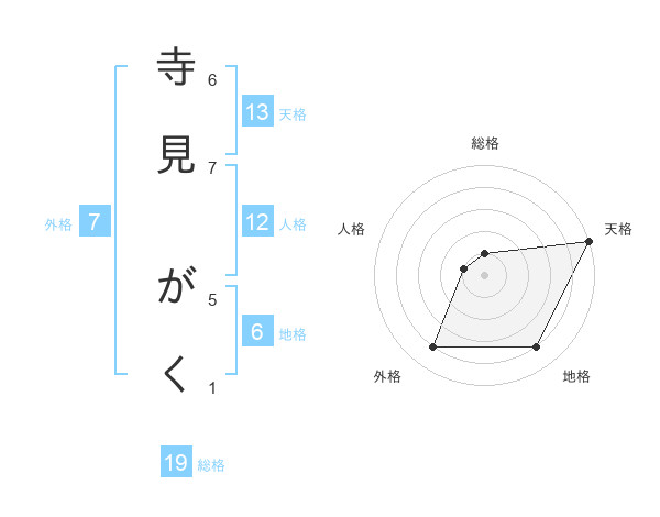 寺見 がくさんの天格は13画の5点!