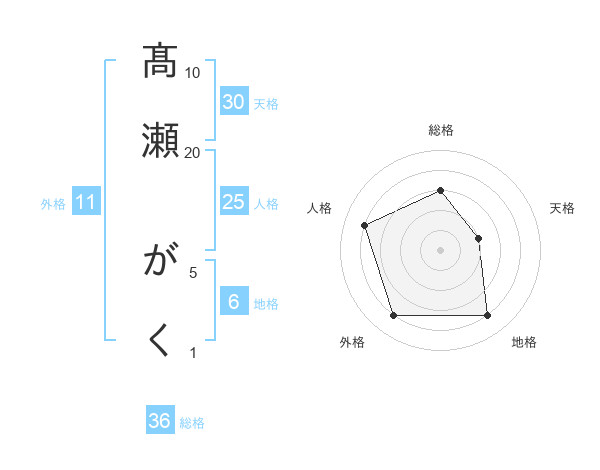 髙瀬 がくさんを姓名の画数から五運を鑑定