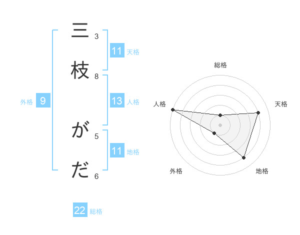 三枝 がださんの地格は11画の4点!