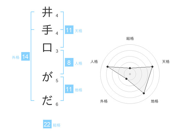 井手口 がださんの総格は22画の1点!