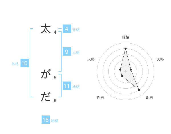 太 がださんの総格は15画の4点!