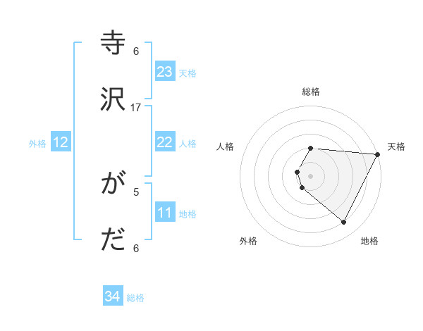 寺沢 がださんの総格は34画の2点!