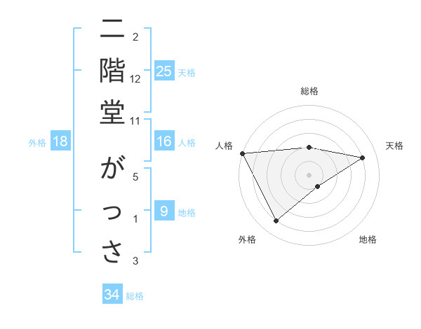 二階堂 がっささんを姓名の画数から五運を鑑定