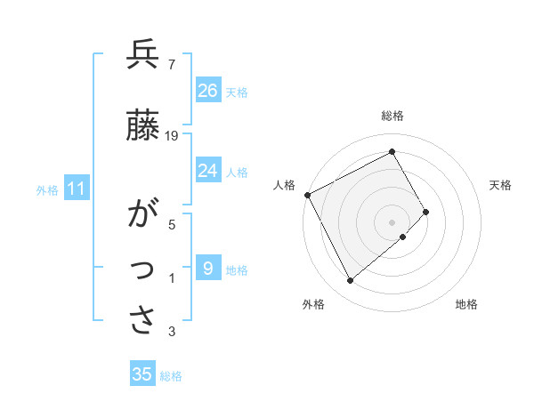 兵藤 がっささんを姓名の画数から五運を鑑定