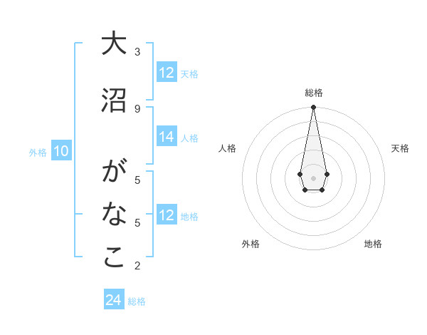 大沼 がなこさんを姓名の画数から五運を鑑定