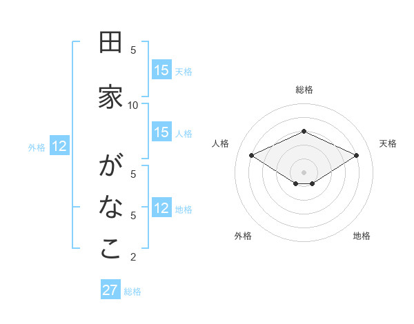 田家 がなこさんの天格は15画の4点!