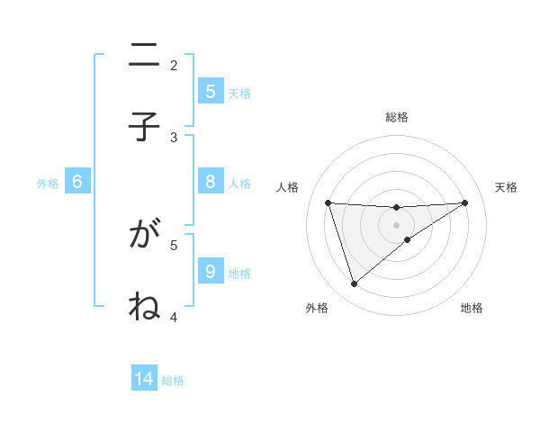 二子 がねさんの総格は14画の1点!