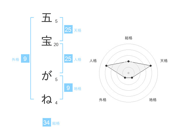 五宝 がねさんの天格は25画の4点!