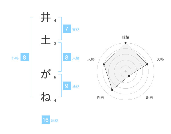 井土 がねさんの外格は8画の4点!