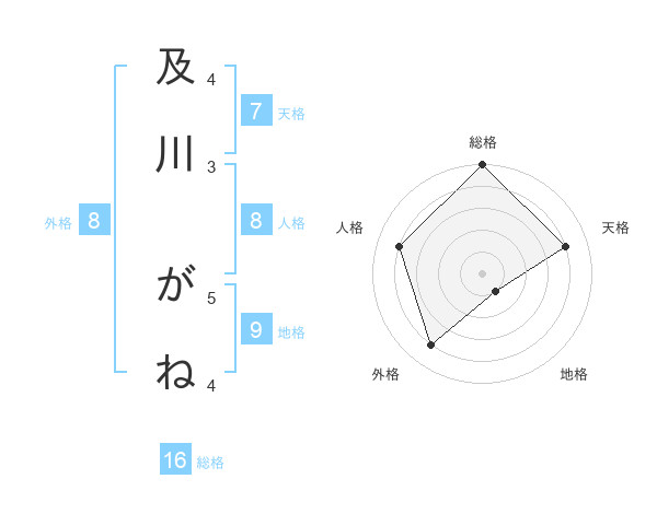 及川 がねさんの天格は7画の4点!