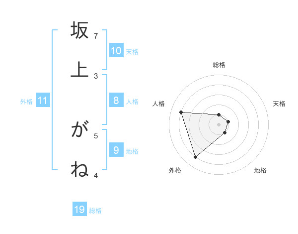 坂上 がねさんの外格は11画の4点!