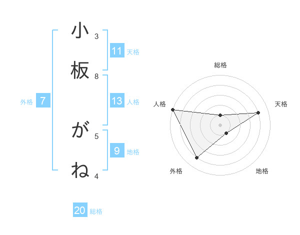 小板 がねさんの総格は20画の1点!
