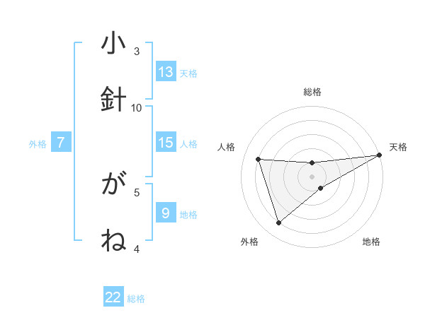 小針 がねさんの天格は13画の5点!