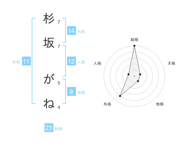杉坂 がねさんを姓名の画数から五運を鑑定