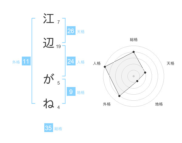 江辺 がねさんの総格は35画の4点!