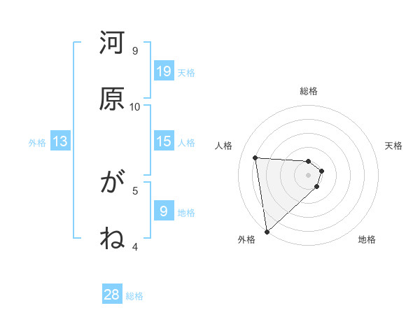 河原 がねさんの外格は13画の5点!