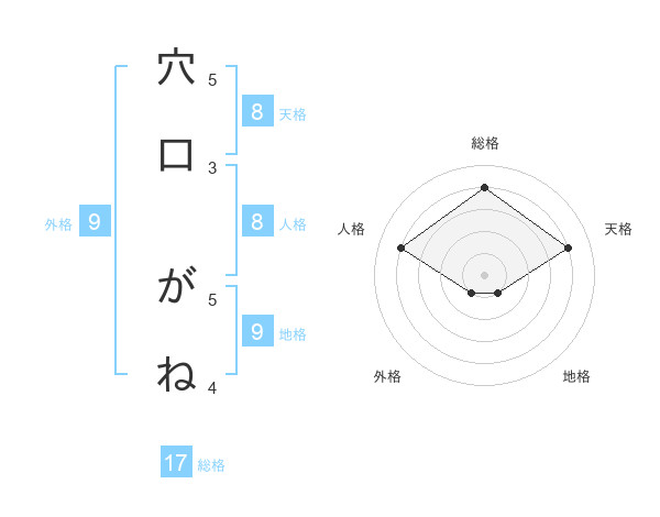 穴口 がねさんの総格は17画の4点!
