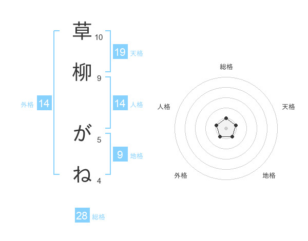 草柳 がねさんの天格は19画の1点!