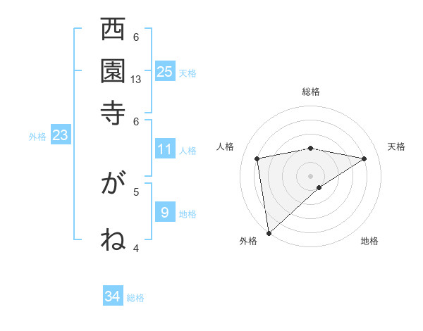 西園寺 がねさんを姓名の画数から五運を鑑定