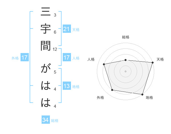 三宇間 がははさんを姓名の画数から五運を鑑定