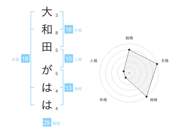大和田 がははさんの地格は13画の5点