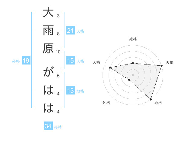 大雨原 がははさんを姓名の画数から五運を鑑定