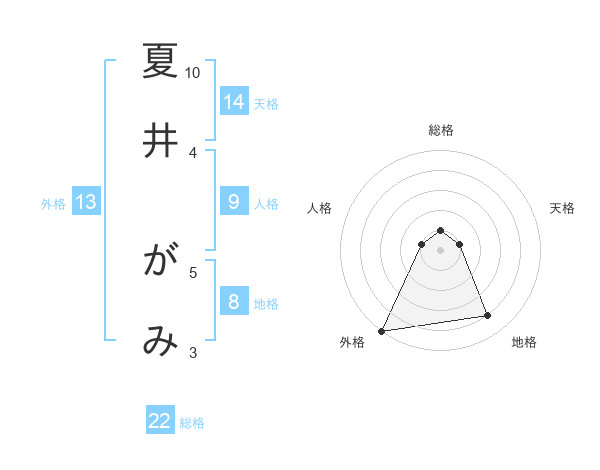 夏井 がみさんの外格は13画の5点!
