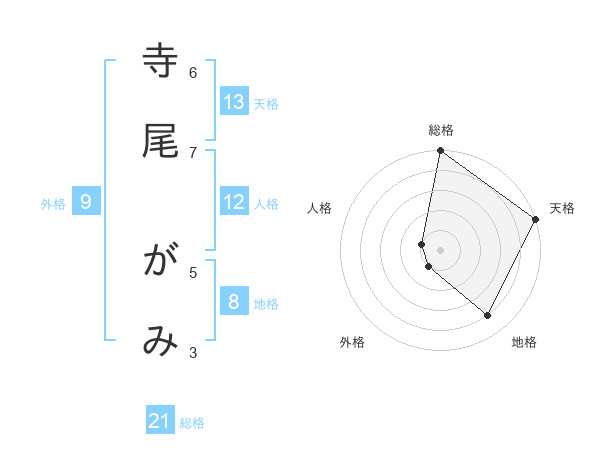 寺尾 がみさんの天格は13画の5点!