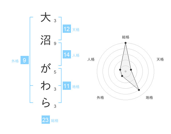 大沼 がわらさんの総格は23画の5点!