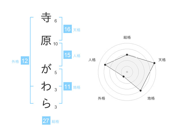 寺原 がわらさんを姓名の画数から五運を鑑定