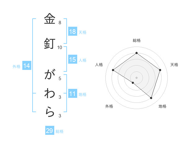 金釘 がわらさんの地格は11画の4点!