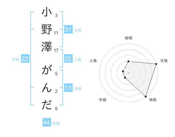 小野澤 がんださんの地格は13画の5点!