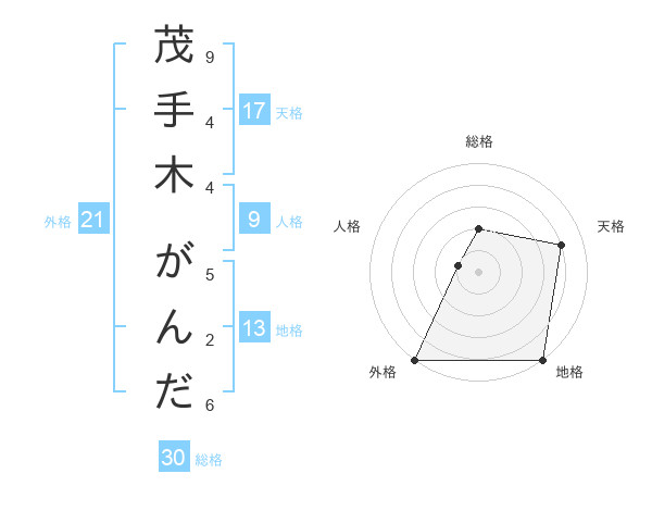 茂手木 がんださんの地格は13画の5点!