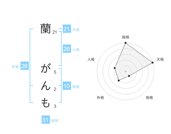 蘭 がんもさんの天格は21画の5点!