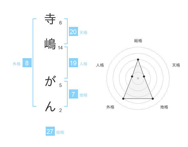 寺嶋 がんさんを姓名の画数から五運を鑑定